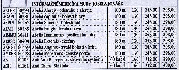 Ceník výrobků - celostní medicína Mudr. Josefa Jonáše